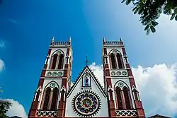 Basilica of the Sacred Heart of Jesus (Tamil: பரிசுத்த இருதய ஆண்டவர் தேவாலயம், French: Basilique du Sacré-Cœur de Jésus de Pondichéry) is a Roman Catholic minor basilica situated on the south boulevard of Pondicherry in Puducherry, India, and is an oriental specimen of Gothic Revival architecture. It contains rare stained glass panels depicting events from the life of Christ and saints of the Catholic Church.[1] In recent years it has become one of the famous pilgrimage spots for Christians.