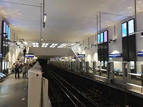 Basilique de Saint-Denis (French pronunciation: [bazilik sɛ̃ dəni]) is a Paris Métro station on line 13 in the town centre of Saint-Denis, north of Paris. It connects with tram line 1 at two nearby stops at Basilique de Saint-Denis and Marché de Saint-Denis.