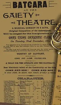 - ^ a b c Fernandes, André Rafael (2010). When the Curtains Rise--: Understanding Goa's Vibrant Konkani Theatre. Tiatr Academy of Goa. pp. 81–82, 87. ISBN 978-93-80739-01-4.