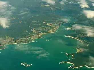 Batemans Bay is fed by the Clyde River and its tributaries, drawing its catchment from the eastern slopes of the Budawang Range and the Great Dividing Range from within the Budawang, Clyde River, Bimberamala, and Monga national parks.[3][4] Cullendulla Creek also flows into Batemans Bay, between the townships of Surfside and Longbeach, west of Square Head.[5]