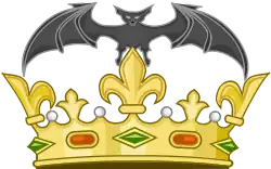The bat (also called the reremouse, reermouse, or rearmouse) is a heraldic symbol sometimes used as a charge, but most prominently used as a crest on or around the crown in municipal arms of the former Crown of Aragon—specifically in Valencia, Catalonia and the Balearic Islands.