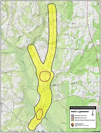 Map of Buckhead Creek Battlefield core and study areas by the American Battlefield Protection Program.