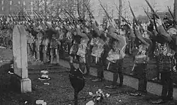 The Germans thought that the appearance of the British squadron at dawn was too remarkable to be a coincidence and concluded that a spy near their base in Jade Bay was responsible, not that the British were reading their encrypted wireless communications.[39] (In 1920, Scheer wrote that the number of British ships present suggested that they had known about the operation in advance, but that this was put down to circumstances, although "other reasons" could not be excluded.)[40]