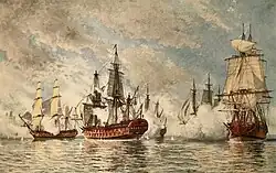 ![]() Contemporary painting of the battle by Louis Jean Desprez (c. 1743–1804) | |||||||