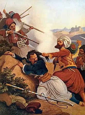 ![]() Yannis Makriyannis defending Piraeus (painting by Peter von Hess) | |||||||