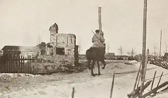 ![]() A White cavalryman passing the ruins of a house. | |||||||