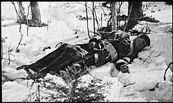 The Battle of Länkipohja (Finnish pronunciation: [ˈlæŋkiˌpohjɑ]) was a Finnish Civil War battle fought in the village of Länkipohja (now part of the Jämsä municipality) on 16 March 1918 between the Finnish Whites and the Finnish Reds. Together with the battles fought in Kuru, Ruovesi and Vilppula between 15 and 18 March, the Battle of Länkipohja was one of the first military operations related to the Battle of Tampere, which was the decisive battle of the Finnish Civil War.[1] The battle is known for its bloody aftermath as the Whites executed 70–100 capitulated Reds. One of the executions was photographed and the images have become one of the best known pictures of the Finnish Civil War.