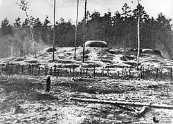 On 3 September the German engineers finally managed to cut through Polish antitank barriers. The Germans used the local civilians as human shields,[5][6][7] which allowed them to finally capture several bunkers on the left flank of the Polish forces, but were unable to push forwards. On the right flank, in the Rzegnów section of the front to the east of the swamps, the attacks were more successful and in the late evening elements of German Wodrig Corps finally broke through the lines of the 79th Infantry Regiment to the rear of the Poles. This widened the front gap in the area of Grudusk.