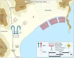 The Athenian wings quickly routed the inferior Persian levies on the flanks, before turning inwards to surround the Persian centre, which had been more successful against the thin Greek centre.[90]