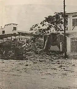 At Musuguri's direction, the TPDF's 201st and 208th Brigades attacked at dawn.[25][32] Their assault focused on Kitovu (which had been left undefended by the Chui Battalion's desertion), Nyendo, and the pineapple field, before concentrating on Makasa proper.[33] The 207th Brigade under Brigadier John Walden, equipped with a squadron of tanks, attacked from Mutukula.[20] Outnumbered, the Suicide Battalion withdrew over a marsh to the Villa Maria road.[33] The retreat, according to Rwehururu, devolved into a "stampede" as he "lost control" of the situation.[34] The New York Times reporter John Darnton later argued that the Suicide Battalion had de facto "rebelled" during the battle.[35] The Suicide Battalion eventually took up positions on Villa Maria hill, where it watched the Tanzanians enter Masaka.[33] The TPDF seized the town with minimal difficulty, finding that most of the Ugandan soldiers and civilians had left.[25] The few civilians that remained welcomed the Tanzanians as "liberators".[36] The Tanzanians encountered determined resistance at Kasijagirwa camp, but were able to take it with the aid of 130 mm (5.1 in) artillery and Katyusha rockets.[20] Amin later claimed that Palestinian guerillas aided in the defence of the town.[37] A battalion of Ugandan rebels captured Buchulo airfield and then destroyed the Masaka Town Hall and the local police station, which were being used as armouries.[38] The Tanzanians were "under orders" to destroy the town as revenge for the damage done by the Ugandans in Kagera and subsequently began razing structures not damaged by the bombardment.[a] By afternoon much of Masaka had been leveled by explosives.[25][19] The Uganda Commercial Bank's local branch building was destroyed, causing the institution to run a deficit for the year,[40] as were the Masaka District administrative headquarters, the Chief Magistrates Court, the Tropic Inn hotel, the regional governor's offices,[41] the post office,[36] the hospital,[42] and the Masaka Recreation Ground facility.[43] Various properties were looted.[10] The 21st Battalion of the TPDF's 205th Brigade was deployed to Mbirizi to prevent any Ugandan reinforcements from arriving from Mbarara.[44]