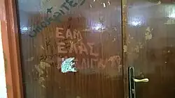 In the early 1980s, the Meligalas events became a point of reference in confrontations between university students close to the "Rigas Feraios" communist youth movement and the Leftist Clusters on the one side and the right-wing ONNED youth organization and its student wing, DAP-NDFK. After the PASOK government officially recognized EAM's contribution in the Greek Resistance in 1982, "Rigas Feraios" members coined the slogan "EAM-ELAS-Meligalas" ("ΕΑΜ-ΕΛΑΣ-Μελιγαλάς") as a counter to the positive portrayal of the Battalionists by the right-wing groups.[115] The slogan remained current in the university students' conference of 1992, following Civil War-era and anti-communist slogans used by DAP.[120] In the late 2000s, when the political slogans and rhetoric of the 1940s increasingly resurfaced in Greek political discourse,[121] and with Golden Dawn's entry into the Greek Parliament in 2012, the Meligalas events were re-evaluated in a positive light by anarchists as an example of militant anti-fascist action. Reference to them is now commonly combined with typically anti-authoritarian slogans.[120]