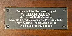 On Wednesday 6 December 2017, a Battle of Mudeford information panel was unveiled on Mudeford Quay close to the former Haven House Inn (now known as the Dutch House or Dutch Cottages) by the Mayor of Christchurch, Councillor Nick Geary. At the same ceremony an adjacent William Allen Memorial Bench was unveiled by Higher Officer Andrew Finn of UK Border Force, the modern equivalent of the 18th century Revenue service.