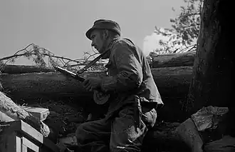 ![]() Finnish soldier in guard duty at Nietjärvi, 19 July 1944 | |||||||