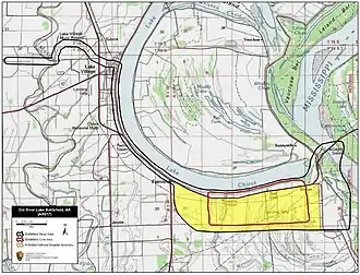 Map of Old River Lake Battlefield core and study areas by the American Battlefield Protection Program.