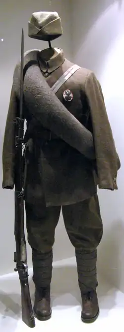 Immediately before the battle, the two regiments were reinforced with the newly created 221st and 236th Infantry Regiments of the Volunteer Army: both understrength and under-equipped, the latter unit was composed in large part from volunteers of Warsaw's gymnasiums.