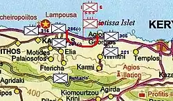 The unit closest to the beach was the active 251st infantry battalion under Lt. Colonel Pavlos Kouroupis. The 1st company and the support company took position opposing the Turkish beachhead at about 09.30,[2] while the 2nd and 3rd companies retained their positions against the Turkish Cypriot village of Templos. The 251st battalion was aided by a tank platoon of 5 T-34/85 tanks, of the 23rd tank battalion (based in Nicosia). The 1st company took positions immediately to the east of the Turkish beachhead, while the support company was positioned southwest of the beachhead, at the location Pikro Nero.[3]