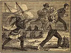 The Battle of Pine Island Ridge was a battle during the Second Seminole War fought on March 22, 1838, at the site of Pine Island Ridge in South Florida.[2] U.S. troops under the command of Lieutenant Colonel James Bankhead and Major William Lauderdale attacked a large Seminole village on top of Pine Island Ridge, an island in the Everglades at the time. The village was headed by Abiaka, who had recently become the principal chief of the Seminole Indians.[3] As the U.S. troops approached the village, they were fired upon by Seminole warriors perched in the trees on Pine Island Ridge, who held off the U.S. troops long enough for Abiaka and the other villagers to escape.[4] The attack ended in failure for the U.S. troops as they failed to kill or capture any of the Seminoles, who successfully evacuated their village without casualties.[5] The battle was the closest the United States came to catching Abiaka during the Seminole Wars.