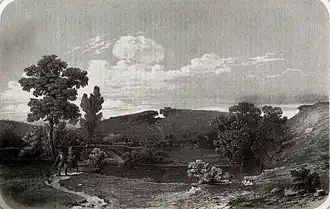 Despite the common designation of the engagement as the "Battle of Pont-Charrault,"[1] a designation that reflects an initial tendency[31] to present inaccurate information in Republican reports, the battle occurred to the north of Saint-Vincent-Sterlanges, specifically within the confines of the Guérinière valley. The precise location of the battle was situated between two bridges: the Gravereau Bridge, to the south along the Petit Lay; and the Basse-Rivière Bridge, to the north along the Vendronneau.[32][3][6]