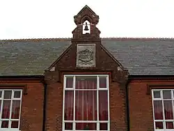 From about 1828 there was a school in The Old Workhouse building with up to seventy pupils.[17] The current village primary school was built in 1875 for Bawdeswell, Bylaugh and Foxley at the sole expense of the Rev Henry Lombe of Bylaugh Hall, who was the Lord of the Manor. His family crest is on the front with the motto "PROPOSITI TENAX" (Firm of Purpose).[18] The school had a roll of 100 as of May 2016.[19] Arrangements are now in hand for the school to join the 'Synergy Multi Academy Trust' headed by Reepham School by spring 2017.[20]