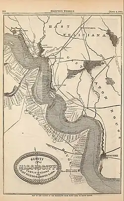 Louisiana in the American Civil War: Map of course of the Mississippi River from Bayou Sara to Baton Rouge