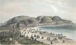 The development of the beach as a popular leisure resort from the mid-19th century was the first manifestation of what is now the global tourist industry. The first seaside resorts were opened in the 18th century for the aristocracy, who began to frequent the seaside as well as the then fashionable spa towns, for recreation and health.[9] One of the earliest such seaside resorts, was Scarborough in Yorkshire during the 1720s; it had been a fashionable spa town since a stream of acidic water was discovered running from one of the cliffs to the south of the town in the 17th century.[9] The first rolling bathing machines were introduced by 1735.