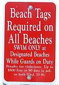 The Village of Island Park and the city of Long Beach in Nassau County, New York issue beach tags for the use of their beaches.[11]