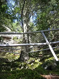 Henry J. Biddle purchased the rock in 1915 for $1 and during the next three years constructed a trail with 51 switchbacks, handrails and bridges.[3] The three-quarter mile trail to the top, completed in April 1918, leads to views in all directions.