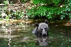 The sanctuary provides a home for brown bears that were kept in inadequate conditions in zoos, circuses or private captivity. Sixteen brown bears live in the outdoor enclosures. Some bears live in pairs or groups, whereas others prefer to live by themselves. A socialization process and evaluation take place before Four Paws experts decide to have bears live with one another permanently. The first bears that arrived on October 15, 2006, were "Lothar" and "Sindi". The most recent arrivals to the sanctuary are "Sylvia" and "Pavle", the last circus bears from Serbia who have lived at the sanctuary since November 2017.[3] Other bears include Michal, Tapsi, Dushi, Felix, Rocco, Ida, Luna, Marei, Mascha, Otto, and Clara.