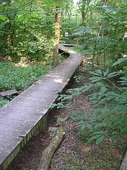 The preserve includes 2 miles (3.2 km) of walking trails, which cross wetlands and a ridge top.[2] There are also 180 species of trees, shrubs and wildflowers. It is managed by the Louisville Nature Center, which is located on the west side of the preserve in a building which opened in 1997. The center claims it is "one of the largest inner-city nature preserves" in the United States.[3] The preserve and nature center run on about a $90,000 annual budget, and in May 2007 reported about $100,000 in operational debt.[4]