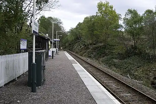Beasdale railway station is a railway station serving Glen Beasdale in the Highland region of Scotland. This station is on the West Highland Line, sited 28 miles 49 chains (46.0 km) from the former Banavie Junction, between Lochailort and Arisaig.[5] ScotRail manage the station and operate all services.