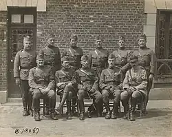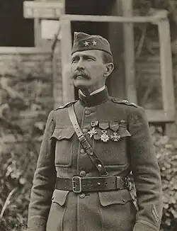After this, Buck, very briefly, in late October assumed command of the 34th Division, which had only recently arrived in France but had been skeletonized and stripped of most of its personnel to provide replacements for other divisions in the AEF.[1][4] The armistice with Germany occurred soon afterwards, on November 11, 1918, bringing the war to an end. For his services in the war, Buck was made a commander of the Legion of Honour by France and awarded the War Merit Cross by Italy.[6]