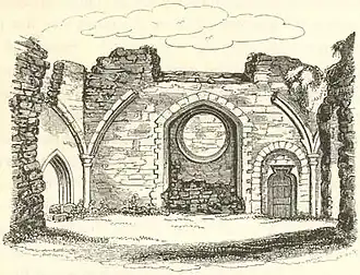 1800 sketch of the ruins, showing the inside of the forebuilding above