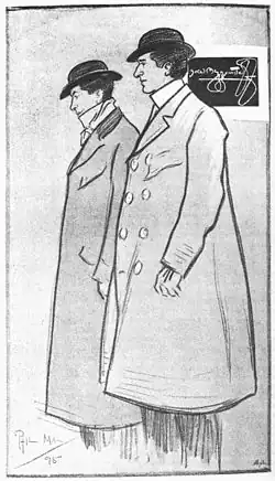 ![]() The Beggarstaffs, drawing of William Nicholson (left) and James Pryde by Phil May (1864–1903), first published in The Studio, September 1895 |