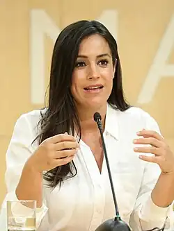 At a television gathering, she met the Citizens Party President Albert Rivera.[3] A voter of Citizens, Villacís began to collaborate with the party in September 2014, advising on local taxes, and she finally joined the party in early 2015.[6] In February 2015 she held a meeting with far-right party Vox, where the later party offered her a position in the list for the 2015 regional election to the Assembly of Madrid but she preferred to maintain the commitment to Citizens.[7] That same month, she ran in her party's primary to be candidate for mayor of Madrid. She defeated her opponent Jaime Trabuchelli, with 60% of the votes.[2]