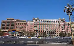 The first wing of the Grand Hôtel de Pékin, a five-story red brick structure, was completed in 1915.[2] A second wing, today known as Block B, was completed in 1917, making the hotel one of the oldest in Beijing.[3] In 1933 Zhang Jingyao was shot in the building by an assassin. Following the July 7 incident in 1937, the hotel was taken over by Japanese forces and later by the Kuomintang government.[4] Later, the banquet hall served guests such as Mao Zedong and Zhou Enlai at the inauguration of the People's Republic.[4]