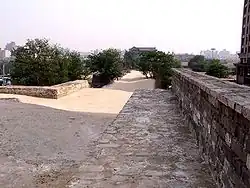 The Beijing city fortifications were a series of walls with towers and gates constructed in the city of Beijing, China in the early 1400s until they were partially demolished in 1965 for the construction of the 2nd Ring Road and Line 2 of the Beijing Subway. The original walls were preserved in the southeastern part of the city, just south of the Beijing railway station. The entire perimeter of the Inner and Outer city walls stretched for approximately 60 kilometres (37 mi).