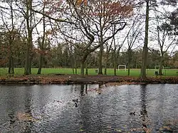The lake is the only substantial stretch of the ancient River Effra remaining above ground.[5] The Herne Hill and Dulwich Flood Alleviation Scheme maximises surface water storage in the park for severe storm events.[6]