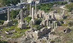 - ^ a b Lieut. H.H. Kitchener [1850-1916], "Lieutenant Kitchener's Reports: IV - P.E.F. Camp, Taiyebeh, 30th May, 1877," Palestine Exploration Fund Quarterly Statement 9.4 (Oct. 1877): 166: "The entrance was probably in the centre of the eastern side, where two columns are squared on the outside--it was probably double, with a round column between. The end columns at both ends of the colonnade were squared on the outside, forming a double column on the inside, exactly the same as in Jewish synagogues, such as at Kefr Ber'am, where the southern columns of the portico were two double columns corresponding with those at the north end of the building. Another point of resemblance is the direction of the colonnade, being within twelve degrees of north and south."