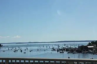 ![]() Passagassawakeag River emptying into Belfast Bay from U.S. Route 1 bridge | |