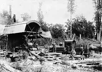 - ^ Timber workers by a Johnson steam locomotive, West Coast. Alexander Turnbull Library, Wellington, New Zealand. Reference Number: 1/2-058143-F.