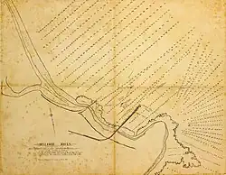 During December 1860, coal mine owner Thomas Hale began the expansion of coal loading facilities at Bellambi Point, including the extension of a branch tramway, coal platform and other works.[6] The following March, whilst workers were cutting down the face of a sand hill to extend the tramway – in the general vicinity of the modern-day swimming pool and carpark – four skulls were uncovered, three fragmented and one complete. "Buried with them were two stone hatchets, in good preservation, and also a curious mass of yellow substance, like amber, that burns and emits a fragrant odour."[7]