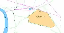 Map of the Bellevue Estate in 1820, overlooking a small valley in which a brook flowed from Germantown down into the Schuylkill River. The family owned most of the land between Nicetown Lane and Ford Road.