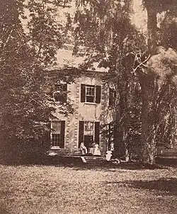 Bellevue remained in the Wharton family for more than 60 years. In 1834 Charles Wharton gave the estate to his son William (1790–1856), who resided there in the summer with his wife Deborah Fisher Wharton for two decades raising their family. It was a working farm of 106 acres (0.43 km2), situated in rolling hills, with house, barn, sheds, vegetable gardens, orchards, fields, and farm animals. The manor house overlooked a small valley and brook that flowed into the Schuylkill River. Large willows, sycamores, and oaks dominated the house and landscape. Servants, mostly Irish, assisted with housekeeping and hired hands worked the fields and maintained the farm animals. The estate was surrounded by woods and estates of other wealthy Philadelphians.