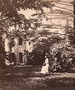 Bellevue Mansion from the east. Anna Wharton stands in the foreground.