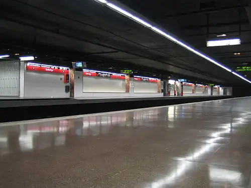 Bellvitge–Rambla Marina is a Barcelona Metro station, in the L'Hospitalet de Llobregat municipality of the Barcelona metropolitan area, and named after the nearby neighbourhood of Bellvitge. The station is served by line L1. It is some 750 metres (2,460 ft) west of Bellvitge railway station, served by Rodalies de Catalunya commuter and regional rail services.[1][2]
