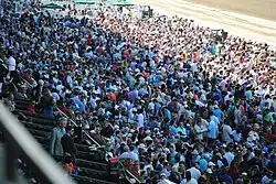 The New York Racing Association held both the 2024 Belmont Stakes and the 2025 Belmont Stakes at Saratoga Race Course because of ongoing construction and renovations at Belmont Park.[32] The purse of the race was increased to US$2 million with the winner receiving $1,200,000. It was run at a shorter distance of 1+1⁄4 miles (2.0 km) instead of the usual 1+1⁄2 miles (2.4 km) due to the smaller size of the Saratoga dirt track.[32][33][34]