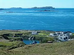 Belnahua is one of the Slate Islands, in the Firth of Lorn in Scotland, known for its deserted slate quarries. The bedrock that underpins its human history is part of the Scarba Conglomerate Formation and its value has been on record since the 16th century.[5][6] Likely uninhabited before commercial quarrying commenced,[7] under the control of the Stevenson family during the 19th century[8] the population expanded to over 150[9] before the island was abandoned again in 1914.[10]