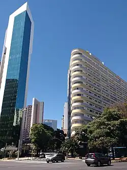 In the 1940s a young Oscar Niemeyer designed the Pampulha Neighbourhood to great acclaim, a commission he got thanks to then-mayor and soon-to-be-president Juscelino Kubitschek. These two men are largely responsible for the wide avenues, large lakes, parks, and jutting skylines that characterize the city today.[14] A 1949 American government film favorably reviewed the planning and building of the city.[15]