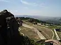 The initial fortress was constructed during the time when the region was part of the Roman Empire. The rock formations in the area served as a natural protection, as fortified walls were practically only built from the northwest and southeast, with the yard being surrounded by rocks up to 70 m (230 ft) high from the other sides.