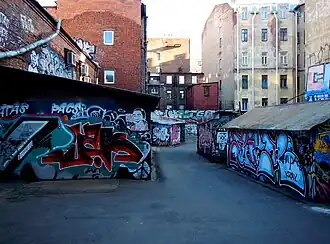 In our times Benois house is known all over Russia due to the numerous TV crime series (Bandit Petersburg and others)—the house is situated close to Lenfilm and local TV studio. It is not only attractive to filmmakers for its good location, but also for a labyrinth of almost a dozen intricately connected inner courtyards.[8]
